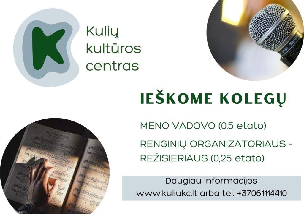 Kontaktai pasiteirauti: Plungės rajono savivaldybės Kulių kultūros centro direktorė Agnė Alčauskienė, tel. +370 611 14410.